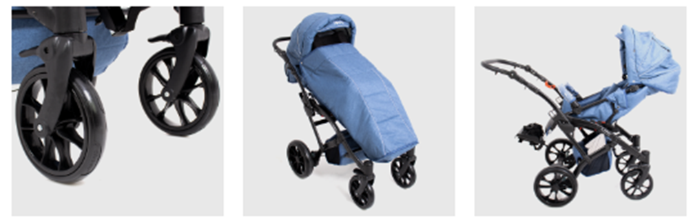 Коляска имеет еще больше интересных и полезных новшеств: поворотные колеса и переставляемое сидение, чтобы ребенок видел Вас или мог познавать мир. Еще больший козырек лучше защищает от солнечных лучей и ветра. Амортизаторы гасят вибрации и сотрясения во время езды, а система 5-точечных ремней и боковых подушек позволяет посадить ребенка в правильном положении и обеспечивают его безопасность. Благодаря богатой стандартной комплектации и дополнительному оборудованию возможно подобрать конфигурацию коляски по потребностям ребенка. Коляска прекрасно подойдет для самых маленьких.