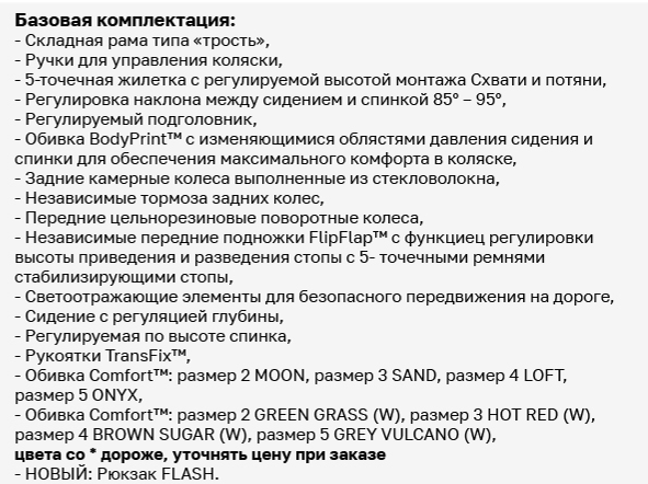 - Коляска прошла тест на столкновение и вполне соответствует требованиям норм EN ISO 7176/19, что позволяет перевозить пассажиров в этой коляске в специально к этому приспособленному транспорте, таком как автобусы и мини-автобусы. Для этого коляска снабжена системой ручек Trans Fix.