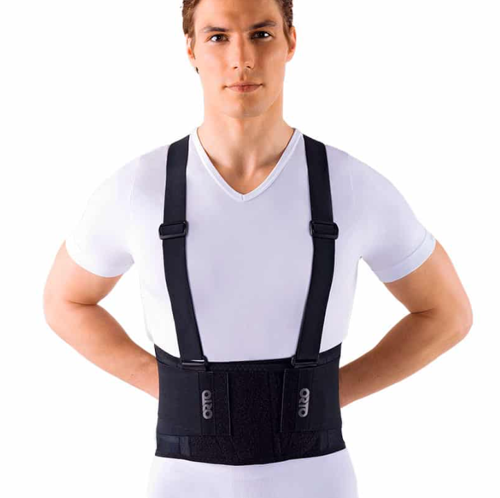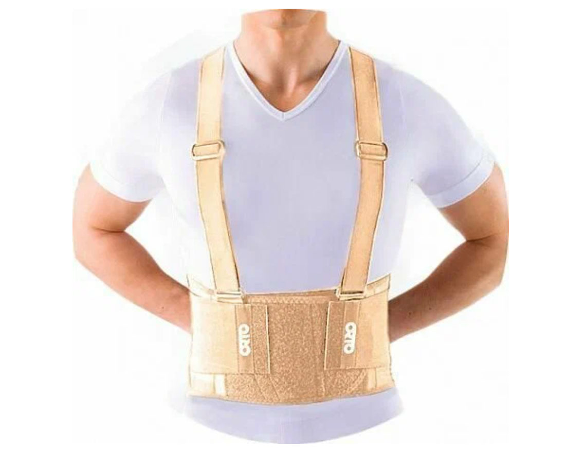 Ортез на поясничный отдел позвоночника ORTO ПК 220 из сетчатой ткани, с гибкими ребрами жесткости и парой двойных эластичных ремней.