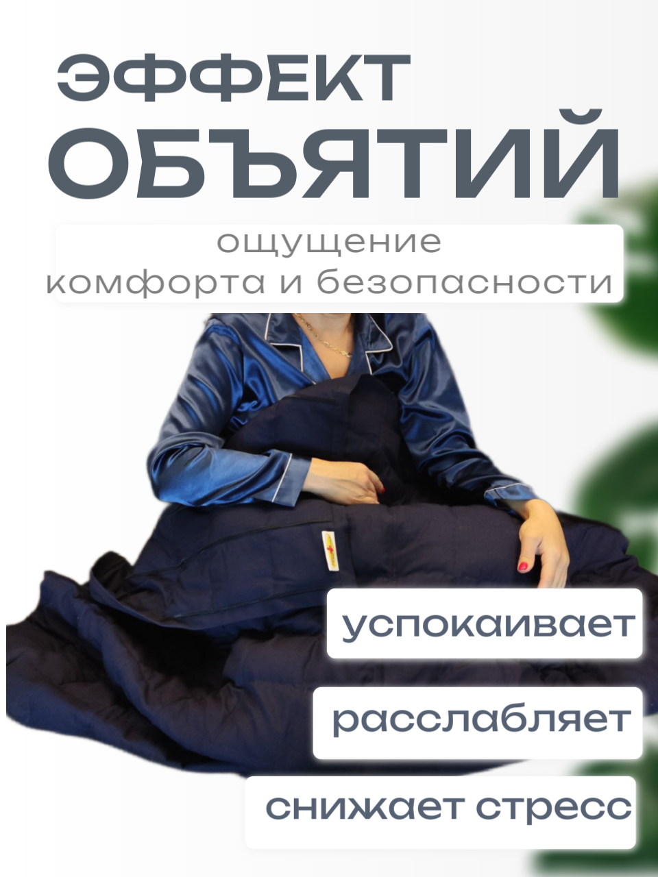 Специалисты утверждают, что утяжеленное одеяло усиливает проприоцептивную обратную связь (проприоцептивная связь - это ощущение положения тела в пространстве, получаемое от мышц, связок и суставов).