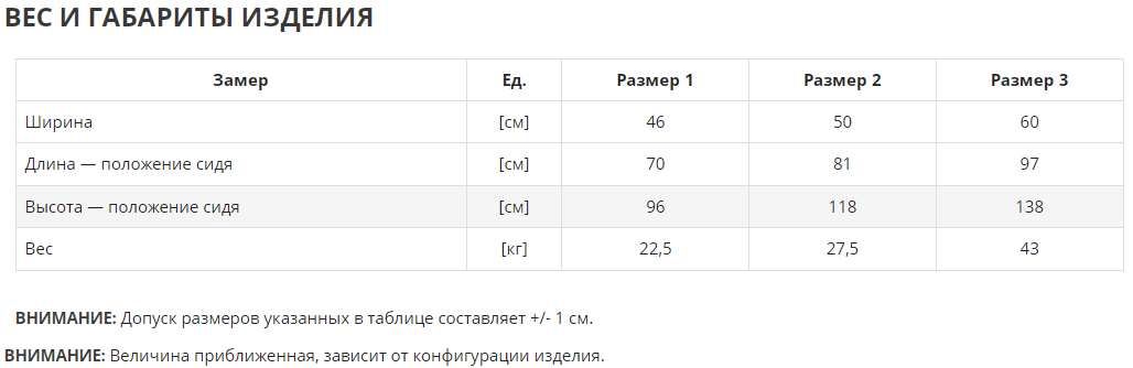 · Pегулируемые  пелоты (размер 1, 2), независимо регулируемые грудные и бедренные пелоты (для размера 3),